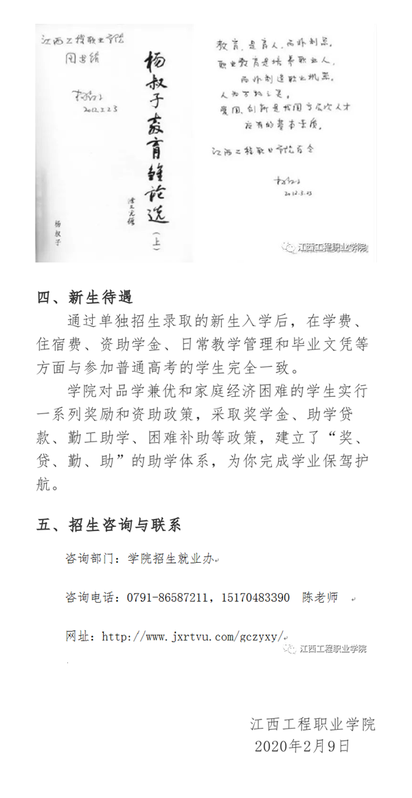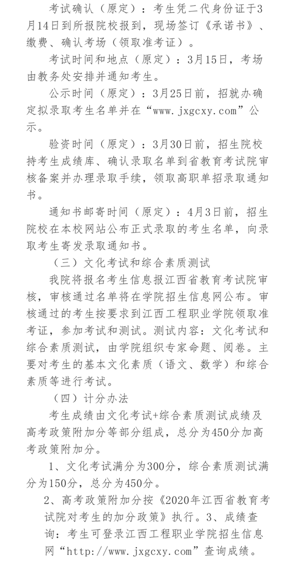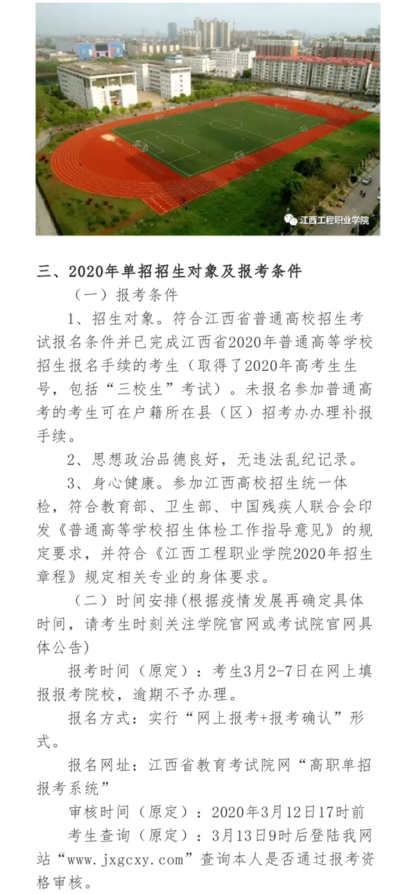 江西工程职业学院2020年单独招生简章