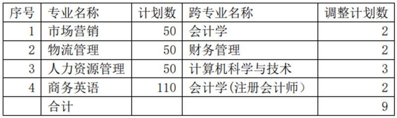 备注:会计学专业已录满,市场营销专业未录满,则调整2个计划数到会计学专业,以此类推。