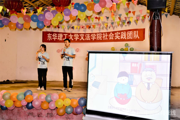 据悉,东华理工大学文法学院一直坚持将校园理论学习与校外实践走访相结合,以讲好党史、传承红色基因为目标,推动青少年争做红色革命精神的弘扬者。通过党史宣传教育活动、党史小课堂、乡野探寻党史故事、演绎红色话剧、观看红色影视作品、制作党史漫画和短视频及演唱红歌等活动,积极推进党史教育工作,增进当地群众对党的认识,传递振兴中华民族伟大复兴的接力棒,为党的光辉征程贡献青春力量。(刘阳、李磊、韩成宁、周冠达、钟丽君、肖怡)