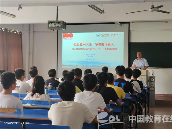 据了解,为做好九江学院2021级新生入学教育工作,九江学院推进实施了“五个一”思想政治教育工作,即:校院领导给新生上思政第一课、各学院举办一场习近平总书记“七一”重要讲话宣讲报告会、各新生班级召开一次以“四史”学习教育为主题的学习研讨交流会、组织新生收看一部优秀思政类电视片、各学院精心策划制作一期思政学习宣传专栏。当天,根据工作安排,九江学院各二级学院处级干部也同时深入课堂,给所在学院2021级新生讲授了第一堂思政课。(供稿:九江学院校)