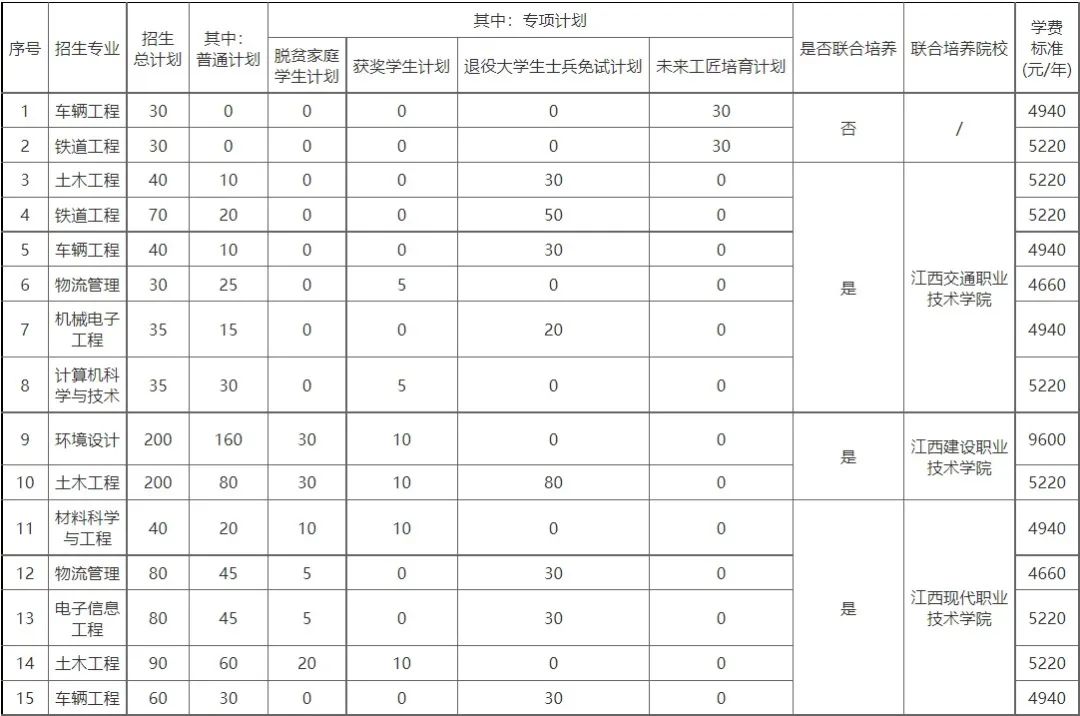 (注:“退役大学生士兵免试计划”录取参照《华东交通大学2022年联合培养退役大学生士兵专升本免试招生简章》。)