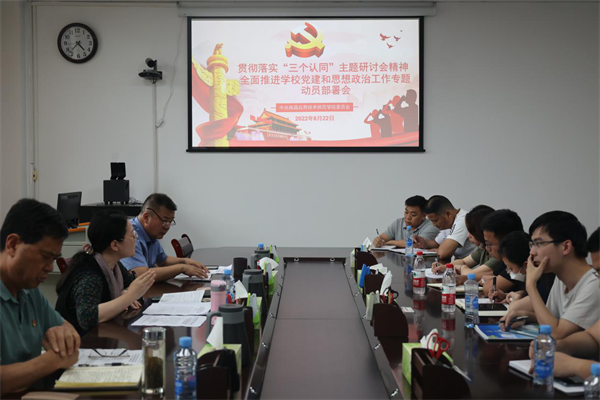 为进一步贯彻落实省委教育工委召开的学习贯彻习近平总书记在中国人民大学考察时的重要讲话精神和高校“三个认同”主题研讨会的视频会议精神,全面推进学校党建和思政工作,6月22日下午,南昌应用技术师范学院在行政楼第一会议室召开贯彻落实“三个认同”主题研讨会精神,全面推进学校党建和思政工作专题动员部署会,校党委书记胡晓娥出席会议并讲话,会议由校党委副书记崔晨主持。校党委委员、纪委书记陶其辉,各二级学院党组织书记,各基层党支部书记,相关职能部门负责人和教师代表参加了会议。