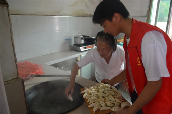 本次活动的重头戏是包饺子。在一些志愿者陪老人聊天的同时,几名志愿者着手准备包饺子。整个包饺子过程,大家做到了速度和质量双重把控,分工明确,有的擀皮、有的调馅、有的包饺子,大家有说有笑、热热闹闹,老人们也都过来帮忙,各尽其责,忙得是不亦乐乎,让平日里安静的敬老院一下子就热闹起来,不一会就包了满满四大盘饺子。