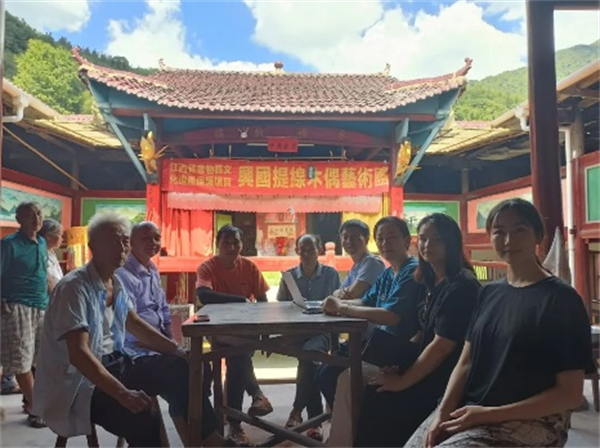 课程团队教师顶着高温深入到兴国县田野村落,先后寻访了江西非物质文化遗产“兴国木偶戏”的多位传承人,详细了解了兴国木偶戏的文化溯源,表演技巧、传承现状及目前保护举措等内容,并共同商讨在均村乡石溪村建设了音乐舞蹈学院“田野采风与文化实践课程基地”。