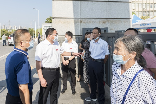 在校门口,赵恒伯、蒲守智一行详细检查了学生入校检测工作和入学登记流程,并督促各部门要全面落实疫情防控工作要求,坚决扛起校园疫情防控责任,聚焦聚力关键环节,严之又严细之又细落实各项常态化防控措施,以精细化管理织密筑牢疫情防控和校园安全防护坚固防线,以热情暖心的服务让新生安心,让家长放心。“同学们从哪里来?”“请各位家长们放心,同学们在豫章师范学院,一定会安全、快乐的学习和生活!”,看着陆续进校的同学和校门口的家长们,赵恒伯、蒲守智纷纷与同学们及家长亲切交谈,了解同学们入学感受,对家长们理解并支持学校疫情防控工作表示感谢。