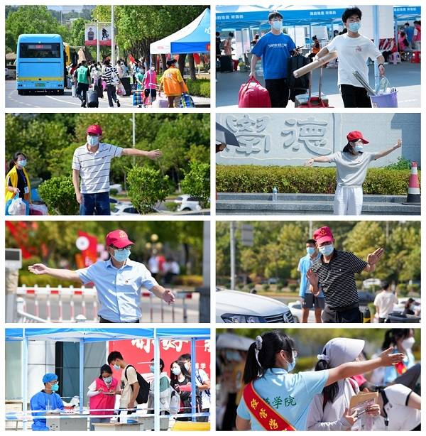 在迎新现场,一批批师生志愿者们来回穿梭,他们不厌其烦地一遍遍为新生查验个人健康码、行程轨迹和核酸检测报告、引导车辆、搬运行李、指引办理登记手续,为新生答疑解惑等。即使天气炎热,他们也始终以热情的笑容和服务为新生们“保驾护航”。新生纷纷表示被学校“暖到了”。“从报到点到宿舍方便吗?”“有没有简化报到程序?”,赵恒伯、蒲守智一行一路看一路问,详细检查学校开学迎新的各项工作是否落实到位,慰问师生志愿者们,向同学们传递学校党委的关心关怀。此外,学校还安排了接驳车为新生搬运行李到宿舍,保障新生安全快速有序“到家”。