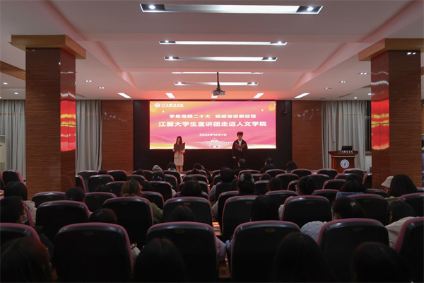 为深入学习贯彻宣传党的二十大精神,江西服装学院大学生宣讲团以“学思践悟二十大,砥砺奋进新征程”为主题开展宣讲活动。12月7日,江服大学生宣讲团走进该校人文学院举办党的二十大精神宣讲会。