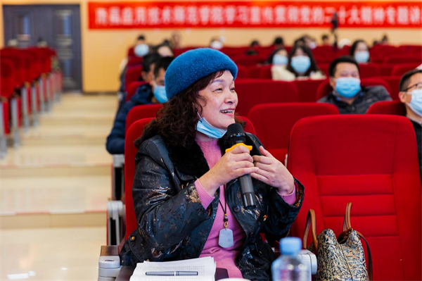 “让我更明白‘无我’的不易,多为他人设想,不断超越自我,突破心中的那个我,进一步端正了入党动机。”听完校党委书记、督导专员胡晓娥面向第三期学生入党积极分子培训班的《党委书记讲道理之一:信仰的力量》宣讲报告后,来自艺体学院2021级视传专业的刘嘉怡感慨道。