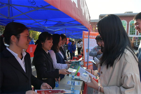 宜春市人民检察院、宜春市公安局、宜春市民政局、宜春市卫生健康委员会、宜春市消防救援支队、中国人民银行宜春市中心支行、宜春市农村商业银行、宜春江盐华康盐业有限公司、宜春市百姓律师事务所、林博衡器、宜春微爱公益等10余家单位、企业代表参加此次活动并为宜春学院上千名师生提供了现场咨询服务,发放宣传资料3000余册。