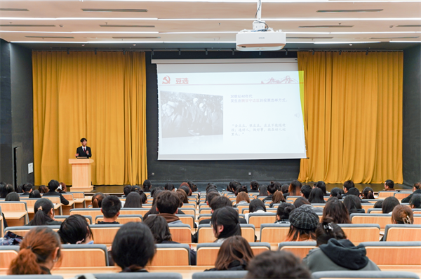 动员会结束后,宣讲团成员2020级英语专业W4班唐雨田以“发展全过程人民民主,保障人民当家作主”为题,紧扣党的二十大报告内容,围绕“发展人民民主的原因”“回望人民民主的历程”“积蓄人民民主的力量”三个方面,为与会师生作首场宣讲。宣讲报告生动诠释了民主的内在价值,梳理社会主义民主发展进程,从青年视角出发,引领同学们感悟二十大精神,认清民主的本质,坚定道路自信、制度自信,展现了中国国情下的民主魅力,以及人民民主持续创造中国之治的巨大优势。
