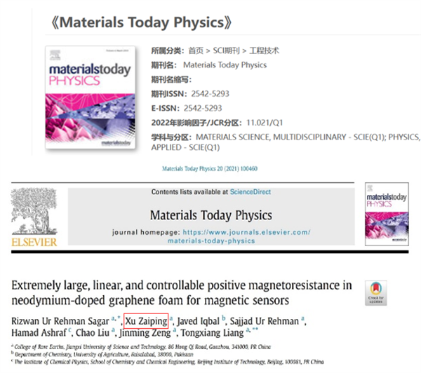 ▲徐仔萍以学生一作身份发表SCI论文,影响因子IF=11.021