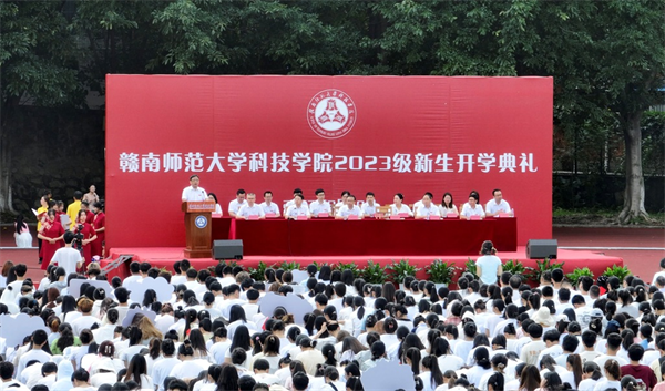 9月10日,赣南师范大学科技学院在田径场举行2023级新生开学典礼。学院党委书记张小东,院长朱钦胜,党委副书记、纪委书记李强,副院长肖承志、刘发明,院长助理张珍荣出席,各有关职能部门、教学系负责同志,新生班主任及2023级全体新生参加。典礼由李强主持。