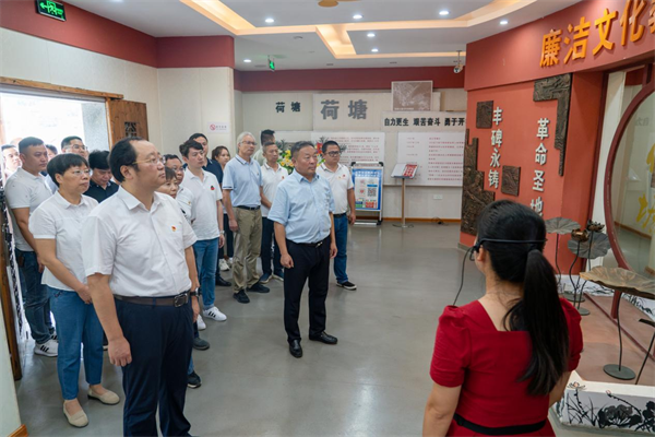 在荷塘廉政文化教育展馆,研学人员跟随讲解员的步伐,追寻着红色革命历史足迹,详细了解革命先辈的英雄事迹,回顾了当年荷塘垦殖场在艰苦环境下垦荒创业的奋斗精神。一张张历史图片、一段段珍贵文字,让在场人员仿佛回到往昔峥嵘岁月,深刻体会到先辈们不怕牺牲的革命精神、百折不挠的奋斗精神,进一步增强了党性意识,提升了党性修养。