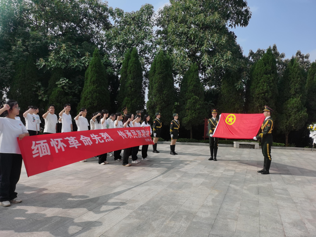 在九江市革命烈士陵园革命烈士纪念碑前,九院学子们列队肃立默哀,在纪念碑前朗诵悼念诗歌《不朽》,“虽然我们已经说不出他们的名字了,但我们知道,他们共同的名字叫英雄,他们的躯体不朽……”深情的赞歌响彻云天,表达了当代青年对先烈们英勇不屈革命精神的敬佩,对他们舍生取义进取精神的赞颂。随后,两名礼兵缓步上前向烈士敬献花篮,同学们怀着庄重的心情,手持鲜花依次向烈士敬献鲜花,并上前瞻仰人民英雄纪念碑,面对团旗重温入团誓词,坚定为共产主义事业奋斗的理想信念。