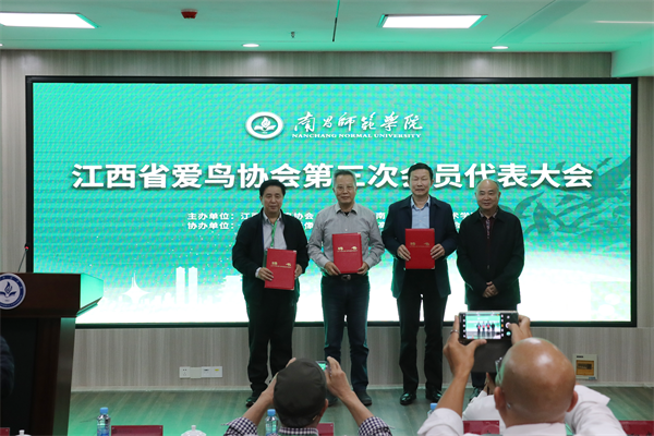 会员代表大会审议通过了第二届理事会工作报告、第二届理事会财务工作报告、第二届监事工作报告、《江西省爱鸟协会章程》、选举办法及计票、监票人名单等内容,听取了换届工作筹备情况及候选人产生情况。会议选举产生了第三届理事和监事,以及第三届常务理事、秘书长、副理事长、理事长、监事长。周毛春为新当选的名誉职务、秘书长、监事长颁发聘书,新当选的第三届理事长肖戈为常务理事代表、理事代表颁发聘书。