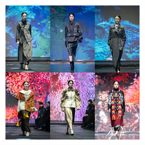 比赛现场,在学校模特专业学生的完美演绎下,35个系列152余套优秀服装设计作品一一进行了展示,他们的作品糅合了大量的传统文化元素和少数民族特色,作品从面料、辅料的选购、款式设计、制版和工艺中充分融合刺绣、面料肌理再造、数码印花、3D打印等工艺手法,大胆探索与时尚服装艺术创新性融合,充分展现了设计师们出色的设计能力、技术水平和时尚品位,让人耳目一新。