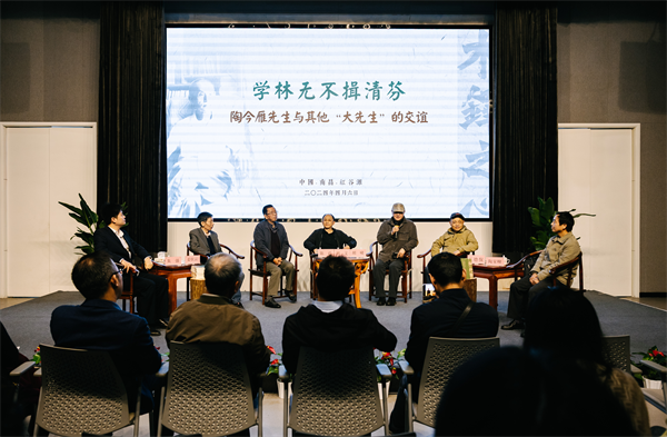 4月6日下午,在红谷滩鸿鹄里文化艺术空间举办了《“学林无不揖清芬”——陶今雁先生与其他“大先生”的交谊》的文化沙龙。沙龙活动由江西省文化促进会副会长、江西出版集团公司原董事长周文主持,出席沙龙活动的嘉宾有中央广播电视总台江西总站原党委书记、资深媒体人、著名学者胡啸,知名文化学者、文艺评论家陈政,南昌大学人文学院原院长、教授王德保,知识出版社社长、出版专家姜钦云,江西师范大学档案馆原馆长、教授陶家柳,《百花洲》杂志执行主编、中国作家协会会员朱强。出席本次活动嘉宾还有知识出版社总编辑张京涛、省妇联二级巡视员李景芝、南昌应用技术师范学院党委副书记蓝贤发等,以及省内文学界、诗词爱好者、收藏界等,江西师范大学、南昌工学院、南昌应用技术师范学院等单位的学者师生共计100余人。