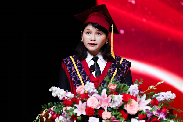 “看到你们从懵懵懂懂到如今的自信从容,作为老师由衷地感到欣慰和自豪。”教师代表、服装设计学院院长张宁与同学们分享了学习和生活感悟,寄语同学们要始终保持对知识的热爱和追求,永远保持学习的状态,永远跟上时代的步伐;同时拥有坚定的信念和执着的精神,相信“保剑锋冲磨砺出,梅花香自苦寒来”;并且永怀感恩之心,带着感恩之心去工作生活,收获更多的幸福快乐。最后,真心祝愿大家的未来如星辰般璀璨,如大海般辽阔。在人生的道路上,高歌前行,勤信博雅;书写华章,织就辉煌!