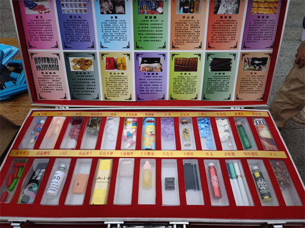 在仿真毒品模型展示环节,26余件仿真毒品模型引起了大家强烈的好奇心,纷纷上前咨询。在场民警和禁毒志愿者重点介绍常见毒品的种类、危害、伪装手法以及防范新型毒品技巧等相关知识,让大家直观认识了毒品的外观和危险性,提醒他们在日常生活中要保持警惕,拒绝药物滥用。这一环节还结合了有奖问答、情景模拟等互动形式,激发大家的参与热情,让师生及家属们在轻松愉快的氛围中学习禁毒知识,提高自我保护意识。