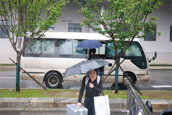 8:00时,当接送车到达时,校学工处和后勤基建处的工作人员顾不上大雨,便开始忙碌起来:精心安排好车辆与路线、登记车辆来回班次信息、安排专门人员在校园接站点和地铁送站点进行乘车引导和行李搬运……为学生们的假期返乡之旅提供全方位的保障和贴心的服务。