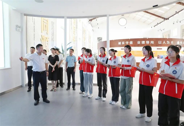 7月9日,化学与食品科学学院暑期大思政实践活动产学研分队在校党委书记王金平的带领下,沿着习近平总书记考察足迹,以“校”为主线路,走进江中集团江中药谷基地,感受“最美中国工厂”的风采,了解江中集团在科技创新、产学研用等方面的情况,感悟新时代培育和发展新质生产力、培养高素质创新型人才的重要性。校党委委员、党委宣传部部长常颖,党委宣传部、化学与食品科学学院相关负责同志参加大思政实践活动。