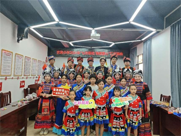 “七彩假期”汇报演出上,孩子们与实践团成员们共同演绎了广场舞《上春山》、《站在草原望北京》、手势舞《感恩的心》、朗诵《中华颂》、歌曲《中国青年志愿者之歌》等精彩节目,展现了他们积极向上的精神风貌。此外,成员们还身着民族服饰,与当地村民一起传唱瑶族非遗文化“剪刀山歌”,不仅让孩子们感受到了传统文化的魅力,也促进了不同文化之间的交流与融合。