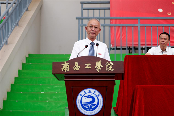 校长康灿华讲话。康灿华以《忠信笃行矢志伟大复兴 自强不息成就卓越人生》为题,寄语2024级全体新生。他首先代表学校全体师生员工,向来自全国各地的一万一百余名新生,加入南工大家庭,成为新的南工人,表示衷心地祝贺和热烈的欢迎;向辛勤培育新生学子成长成才的家人致以崇高敬意;向为军训工作辛勤付出的各位教官和老师们表示诚挚的感谢。康灿华以“践行育人为本、追求卓越的办学理念;弘扬忠信笃行、自强不息的大学精神;培育以“天工蓝”时代工匠精神为核心的校园科技文化”三个方面向大家展现了学校办学理念与发展追求。他深情寄语2024级莘莘学子,希望同学们以舍我其谁的责任感、时不我待的使命感、只争朝夕的紧迫感,扎根南工沃土,练就过硬能力本领,以昂扬姿态奏响青春号角,以满腔热情续写南工人的精彩篇章,为实现中华民族复兴伟业贡献力量。