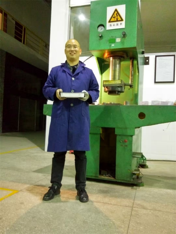 贡太敏博士在开展金属陶瓷新材料模压成型试验