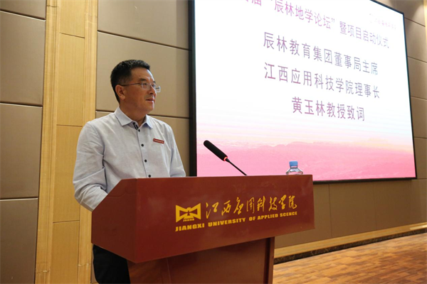 学校理事长、党委副书记黄玉林在致辞中表示,学校坚持“地方性、应用型”的办学定位,立足服务区域发展需求,积极推进地学学科建设与人才培养体系改革。此次联合主办“辰林地学论坛”,旨在整合行业资源、搭建协同平台,推动地学科技创新、成果转化与科普教育融合发展。他指出,论坛的举办具有三重意义:一是打造学术高地,推动地学基础研究与应用研究协同发展;二是服务地方转型,助力江西构建以资源高效利用为导向的地学产业体系;三是深化协同育人机制,培养具备科研能力与社会责任感的复合型人才。未来,学校将以论坛为桥梁,持续拓展与政府、高校、科研机构及行业企业的合作维度,为国家自然资源开发与保护贡献“江西方案”。