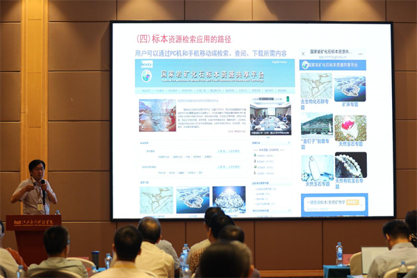 论坛邀请俄罗斯外籍院士、中国地质大学(北京)原党委书记兼校长吴淦国,原自然资源部科技发展司司长高平,亚洲古生物协会副主席王永栋,国家岩矿化石标本资源库平台主任何明跃等20余位地学专家学者参会。论坛共设13场主旨报告,内容涵盖古生物化石、矿床学研究、国家岩矿标本资源建设、地学科普传播等多个方向,集中展示了地学领域的最新研究成果与实践经验。报告主题兼顾学术前沿与社会服务,既包括《中国盆甲鱼类研究与江西古鱼类化石资源调查》《赣北地区铀矿床基本特征》《矿物学与矿床学研究新发展与思路》等专业分享,也有《矿晶科普:科学与艺术的探索实践》《化石中的智慧与爱情》《世界地质公园标注及价值启示》等兼具科学性与大众传播力的科普报告,体现了论坛“学术引领+科教融合”的鲜明特色。