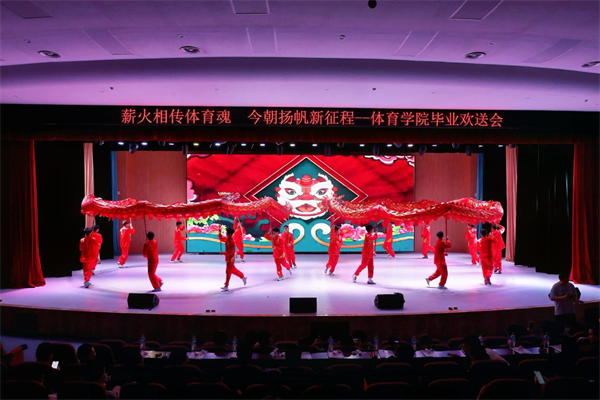 活动在激昂的《龙腾狮跃》舞龙舞狮表演中拉开序幕。九节长龙气势磅礴,翻腾跳跃;威猛醒狮灵动抖擞,穿梭腾挪,瞬间点燃全场热情。随后,精彩纷呈的节目轮番上演。舞蹈《Spark》《Is This Love》以充满张力的舞步,尽情释放青春动感;独唱《瞬》《红豆》或婉转悠扬,或深情倾诉,细腻的情感引发全场共鸣。体育教育专业学子带来的跳绳和武术表演充分展现了专业特色:翻飞的跳绳编织出绚丽光影,利落的武术招式刚劲有力,尽显体育人的飒爽英姿。彩带龙表演《山河图》彩绸飘逸,健美操《舞动青春》动作整齐划一,生动诠释青春的无限活力与风采。团体合唱《这世界那么多人》以温暖的旋律,将毕业生对母校的眷恋与对未来的憧憬推向高潮。