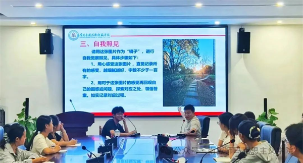 经济与管理学院党总支书记龙犇以“允许一切发生,专注此刻绽放”为题,通过“自我觉察”“自我照见”为双轮,引导红色班级行至班学生写下学业繁重、未来迷茫等困惑,通过“以图为镜”自我照见,帮助学生从“做事进度缓慢的自我怀疑”中突围。他强调“发生的事情不重要,关键在于自己怎么看”,鼓励学生拒绝内耗、活在当下,现场思想碰撞中,学生收获了“缓解压力、直面挑战”的新启发。