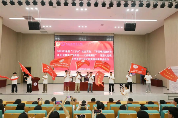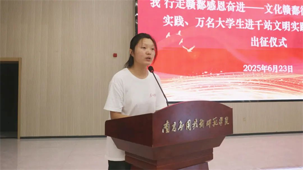 6月23日,南昌应用技术师范学院举行南昌应用技术师范学院2025年暑期“三下乡”社会实践、“牢记嘱托强国有我 行走赣鄱感恩奋进——文化赣鄱行”暑期大思政实践、万名大学生进千站文明实践志愿服务活动出征仪式。副校长郑行忠出席活动,并为出征队伍授旗,宣布活动启动。