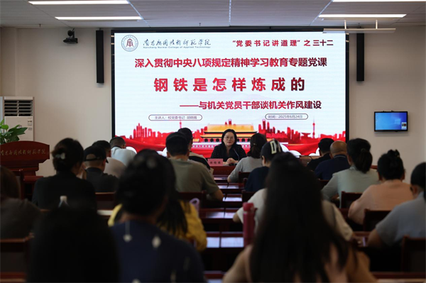 6月24日,南昌应用技术师范学院党委书记、督导专员胡晓娥聚焦培养提升“身在兵位、胸为帅谋”的思维和格局,以“钢铁是怎样炼成的——与机关党员干部谈机关作风建设”为题,采取“讲道理”方式,为机关全体党员干部讲授深入贯彻中央八项规定精神学习教育专题党课,这也是“党委书记讲道理”系列讲座的第三十二讲。
