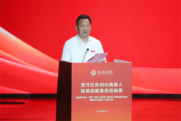 会议发布了《南昌师范学院“五青”思政工作体系十周年育人实践纪实》宣传片,生动展现了十年来“五青”思政工作体系建设的风采。青风学堂学生黎良俊和青雨润堂辅导员欧小元分别作案例展示,以青年学子和一线辅导员的视角,直观呈现了“五青”思政工作体系在育人实践中的生动成效。