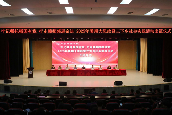 牢记嘱托强国有我,行走赣鄱感恩奋进。6月27日下午,江西师范大学科技学院2025年暑期大思政暨“三下乡”社会实践活动出征仪式在梦剧场举行。共青城市委常委、市委宣传部部长、市委统战部部长鄢俊彬,市委统战部副部长郭石发;院党委副书记、院长宁洁,院党委副书记陈文杰,院党委委员余小军、熊南菲出席仪式。江西师范大学科技学院相关部门、各教学党总支负责人,实践队指导教师、队员等200余人参加。仪式由余小军主持。
