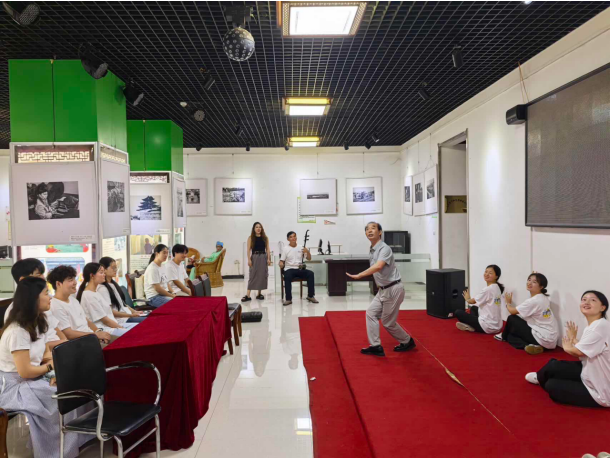 为全面贯彻落实习近平总书记关于青年工作的重要思想,引导和帮助广大青年学生上好与现实相结合的“大思政课”,在社会课堂中“受教育、长才干、作贡献”。2025年6月24日,在新余开展“三下乡”调研期间,新余花鼓戏传承人、国家二级演员章志刚,为艺体同行初心实践团成员展开了一场别开生面的花鼓戏教学。