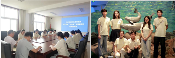 在长江与鄱阳湖水生生物保护基地,服务队通过观察水生生物、研读数字化资料,直观感受到长江及鄱阳湖水生生态系统的复杂与脆弱,进一步增强了保护江豚的紧迫感和责任感。随后,队员们与九江市湖口生态环境局开展专题交流座谈会,双方聚焦长江与鄱阳湖生态交汇区,就水质监测技术创新、完善生物多样性保护体系等议题进行了深入研讨。