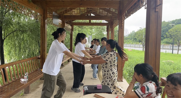 实践队在黄酬门与当地阿姨共舞打鼓,队员们手持鼓槌融入民俗活动,鼓声与笑声交织,青春朝气与乡土热情碰撞,不仅搭建起代际情感桥梁,更让民俗文化在青年参与中焕发生机,使队员体会到乡村文化的温度与活力。