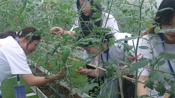 实践队探访白合村生态产业园,在智能温室中见证了黄色番茄、鲜食玉米等特色果蔬的科技培育成果。队员们在村干部的讲解下,深入了解了产业园内智能温室、自动化种植设施等科技应用场景,以及“合作社+基地+农户”的发展模式。该模式通过流转闲置土地,打造出集高效农业生产、观光旅游、研学实践、劳动教育于一体的多功能基地,不仅盘活了土地资源、提升了农产品附加值,更以知识活力与文化内涵为乡村发展注入新动能,持续吸引着外界的关注。