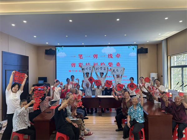 实践队与老人在乡贤馆开展剪纸、编织中国结及书法活动。老人运剪如飞展现花鸟鱼虫,队员化身“小老师”指导编织技巧,书法区老人挥毫写下“知行青年”等寄语。活动既传承非遗技艺,又在新老互动中传递温情,为乡村文化发展注入青春活力。