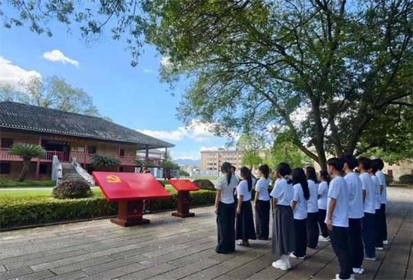 午后的阳光洒满寻乌调查纪念馆门前的草坪,马克思主义学院的学子们身着整齐的服装,面向鲜红的党旗举起右拳,重温入党誓词。“我志愿加入中国共产党……”铿锵有力的誓言穿越时空,与这片土地上的革命记忆交相辉映,学子们眼中闪烁的坚定光芒,是青春对信仰的庄严承诺。这誓言不仅是对党的百年征程的致敬,更是对新时代使命的承接,每一个字都凝聚着青年学子传承红色基因、赓续红色血脉的决心。