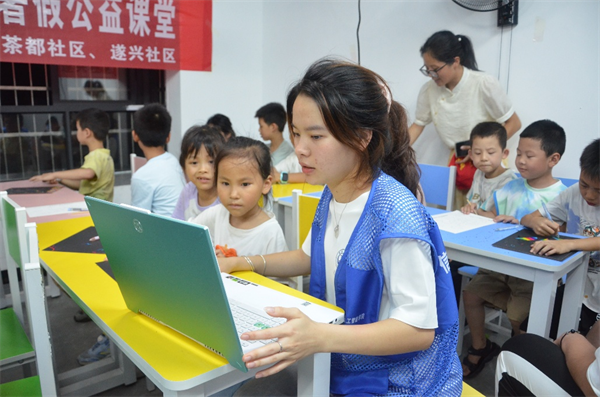 为深入学习贯彻习近平新时代中国特色社会主义思想,践行习近平总书记考察江西重要讲话精神,推动优质资源下沉新时代文明实践中心,7月3日,南昌工学院“遂川红迹”实践队联合遂川县茶都社区、遂兴社区开展“万名大学生进千站”活动。实践队来到茶博园小区儿童之家开展暑期公益课堂活动,依托专业优势,将前沿信息技术与红色文化教育创新融合,为社区青少年带来沉浸式科技体验与红色文化启蒙,构建起跨学科实践育人新范式。