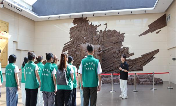 图为实践队员聆听“红领巾”宣讲员讲解安源路矿工人运动。颜若菲供图