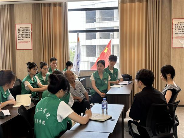 图为实践队员倾听60年党龄老党员讲述红色故事。姚一伊供图