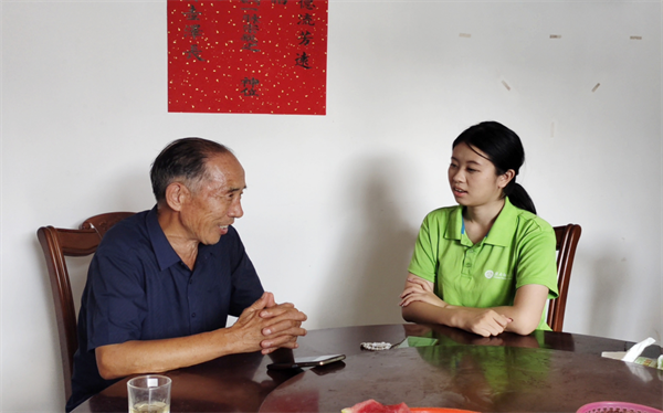 图为文学与新闻传播学院实践团成员寻访兴国山歌传承人杨学鹏