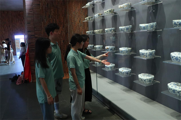 随后,队员们抵达了中国陶瓷博物馆。馆内陈列的瓷器跨越千年,各自诉说着历史的篇章,两万余件历代陶瓷藏品共同勾勒出陶瓷文明的完整谱系。从新石器时代的原始陶器到唐宋时期的影青瓷、白瓷,再到元代的青花瓷以及明清两代的官窑彩瓷,队员们通过与这些跨越时空的器物进行对话,梳理了中华陶瓷艺术的发展脉络。在参观过程中,队员们不禁感慨于中国陶瓷艺术的深邃与博大,更深刻地领悟到中华传统文化的悠久历史,以及文化传承所承载的深远意义。