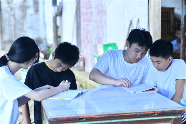 图为实践队成员在下庄村进行一对一辅导。欧阳连花 摄