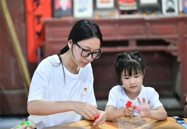 图为实践队成员在下庄村开展手工课堂。欧阳连花摄