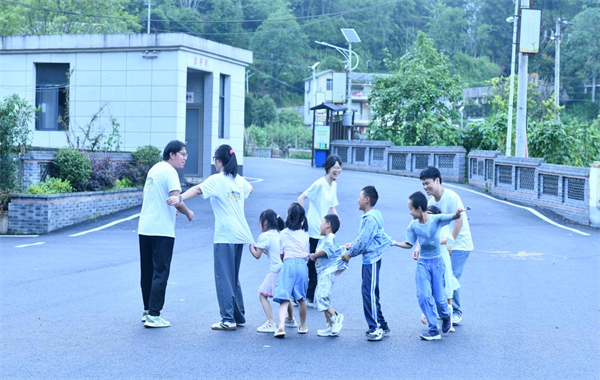 图为实践队成员与留守儿童开展娱乐活动。欧阳连花摄